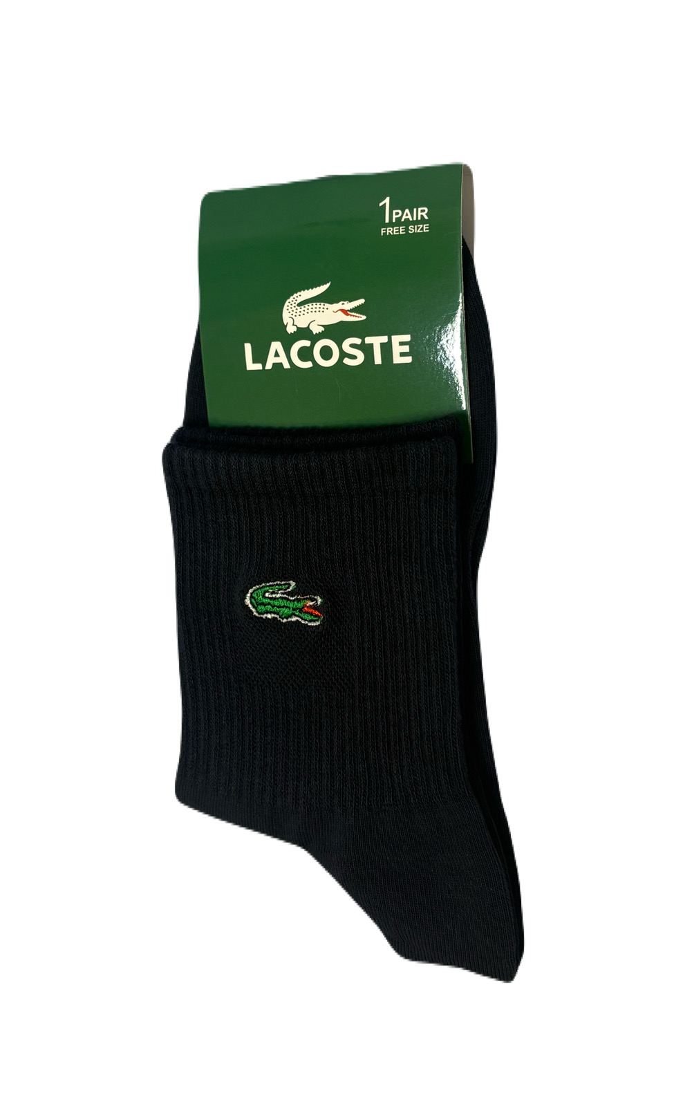 لوگوی معروف Lacoste که با دقت بر روی جوراب گلدوزی شده است، نماد کیفیت و طراحی مدرن این برند است. طراحی نیمساق این جورابها به راحتی با انواع کفشها و لباسها ست میشود، از کفشهای ورزشی گرفته تا کفشهای اداری.
