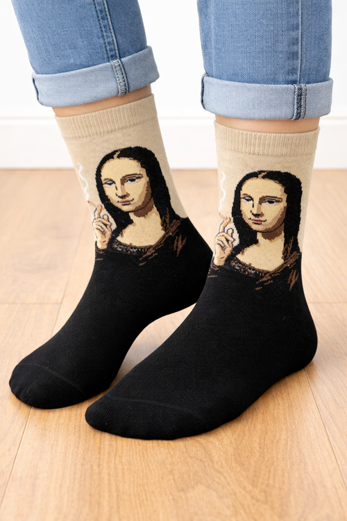 جوراب فانتزی نخ پنبه ساقدار Unisex طرح مونالیزا