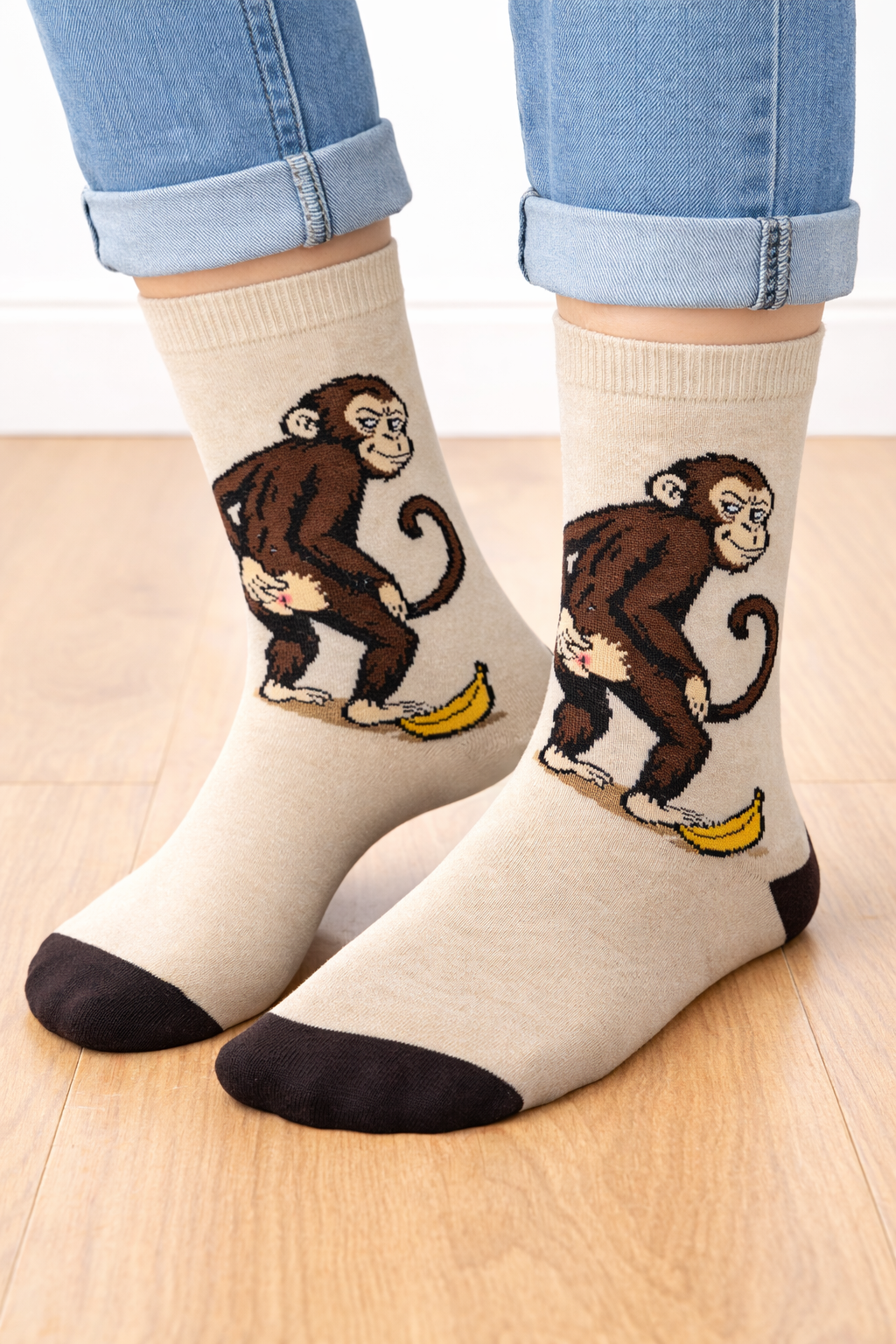 جوراب فانتزی نخ پنبه ساقدار Unisex طرح میمون